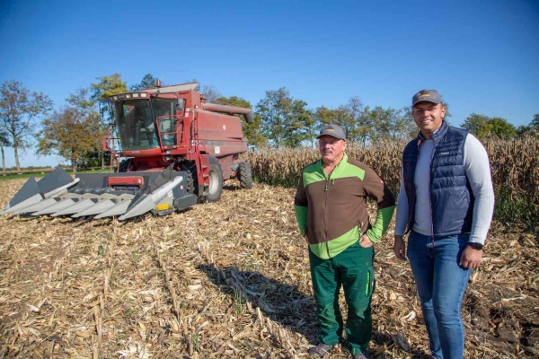 Iosif Kiss lucrează 70 de hectare în raza localităţii Dorobanţi din judeţul Arad, chiar pe graniţa cu Ungaria, şi de doi ani foloseşte sistemul de recoltat porumb dezvoltat de Optigép.