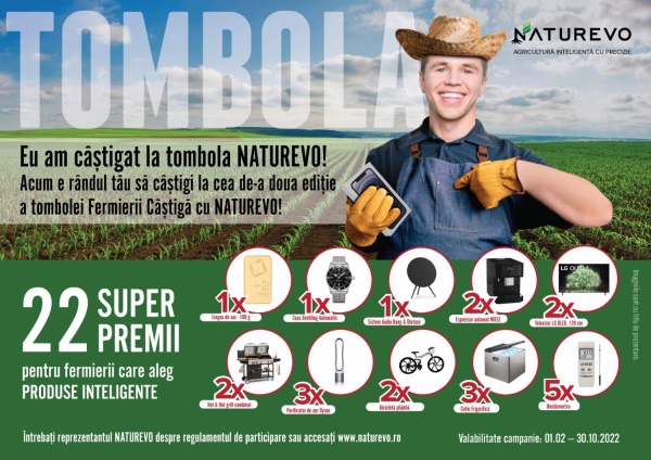 Compania NATUREVO, cu o experienta de peste 23 de ani în piață, începe anul cu vești foarte bune pentru fermierii din România. Din luna februarie 2022, NATUREVO lansează programul de fidelizare “Fermierii castigă cu NATUREVO” și pune în joc 22 de premii super atractive: Lingou de aur – 100 gr / 24 K; Ceas bărbătesc […]